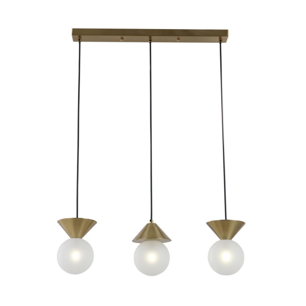 OEM Factory Strong Lighting June New Model-Brushed Brass 선형 3- 라이트 펜던트 램프는 내구성과 부식 저항을 위해 전기 도금 마감 처리 된 고품질 금속을 사용합니다. 천장 플레이트는 삼각형 램프베이스와 통합되어 안정적인 구조를 형성하는 긴 스트립입니다. 유리 그늘은 높은 붕소 물질로 만들어지며, 극한 온도 (-30 ° C ~ 300 ° C)에 내성이있어 장기 성능을 보장합니다.