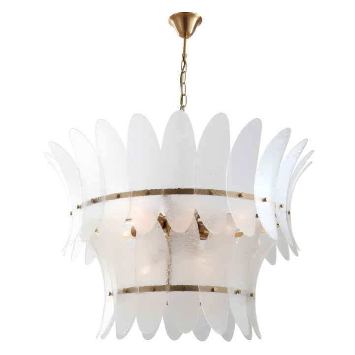 이 모던하고 럭셔리한 황동 샹들리에의 사용 가능한 마감재에는 황동, 크롬, 니켈, 금, 검정색 또는 흰색이 포함되어 있으며, 각 마감재는 객실 장식과 조화를 이루거나 눈에 띄는 독특한 외관을 선사합니다. 에너지 효율을 높이려면 LED 전구를 선택하고, 따뜻하고 클래식한 빛을 원한다면 백열 전구를 선택하세요.